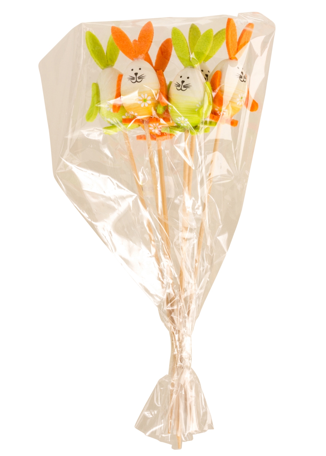 Osterhasen grün & orange mit Stab l=25cm, Durchmesser