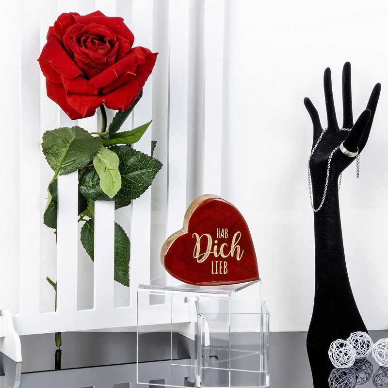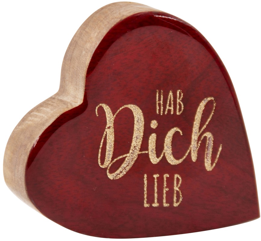 Deko Herz aus Holz Rot auf der Siete liegend "Hab dich lieb" ca. 9,5 x 10cm