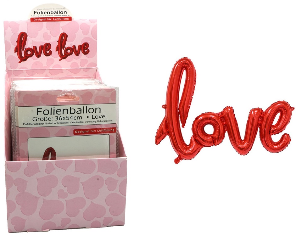 Folienballon "Love" rot, ca. 36x54cm im 48er T-Dsp.
