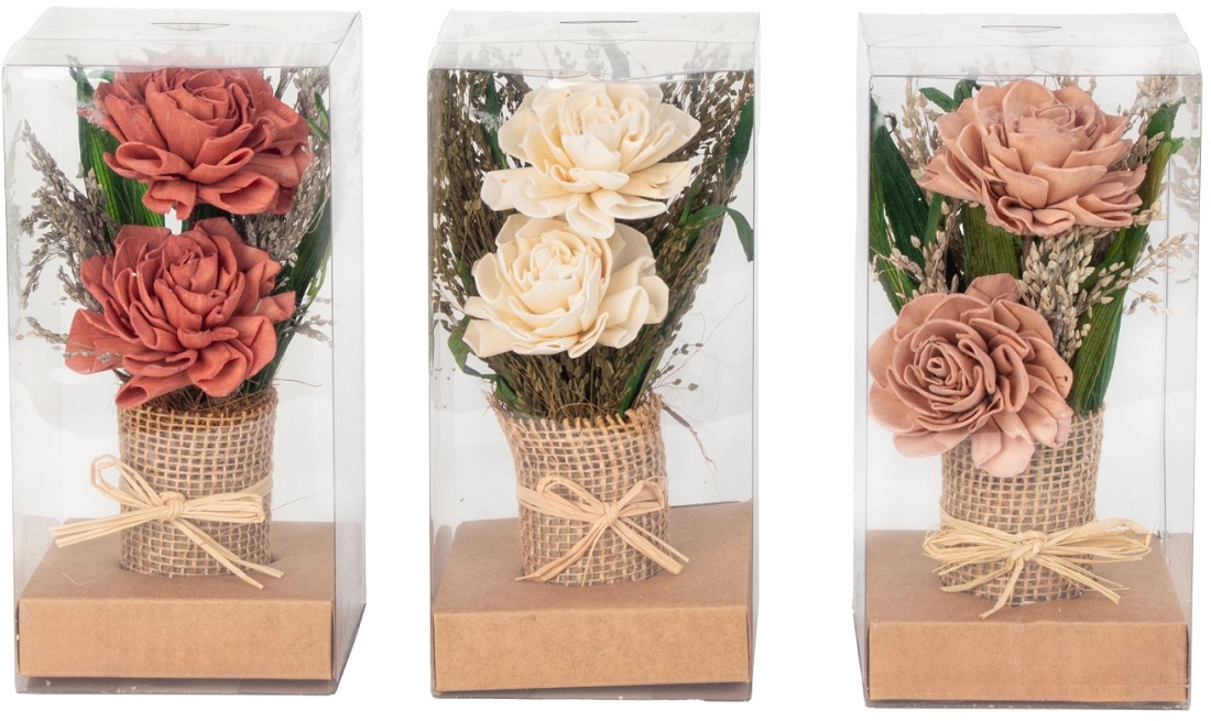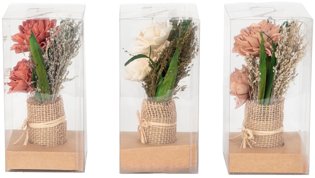 Trockenblumen-Gesteck 3/s mit Roten, Weißen & Rosa Blumen gepackt in PVC-Box ca.