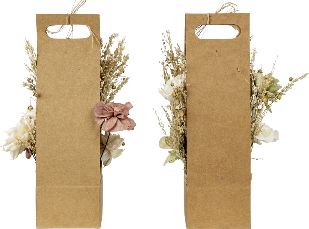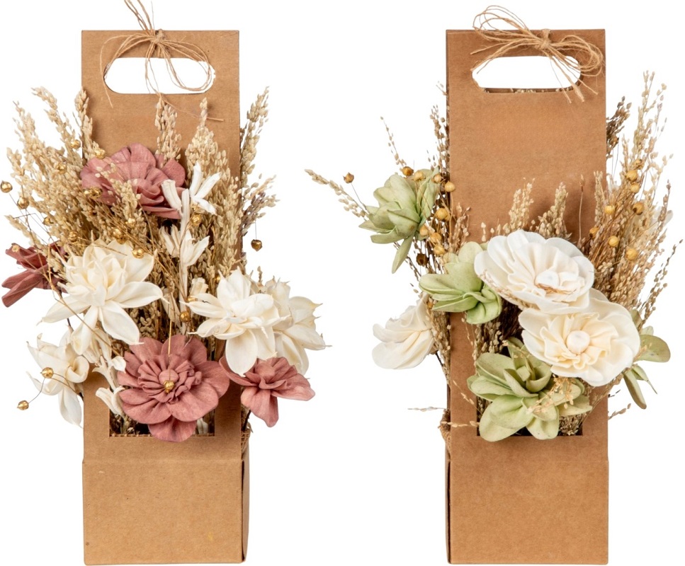 Trockenblumen-Gesteck gepackt in Kraftpapier 2/s ca. 30,5cm (1x Weiße & Rosa Blumen; 1x Weiße & Grüne Blumen)
