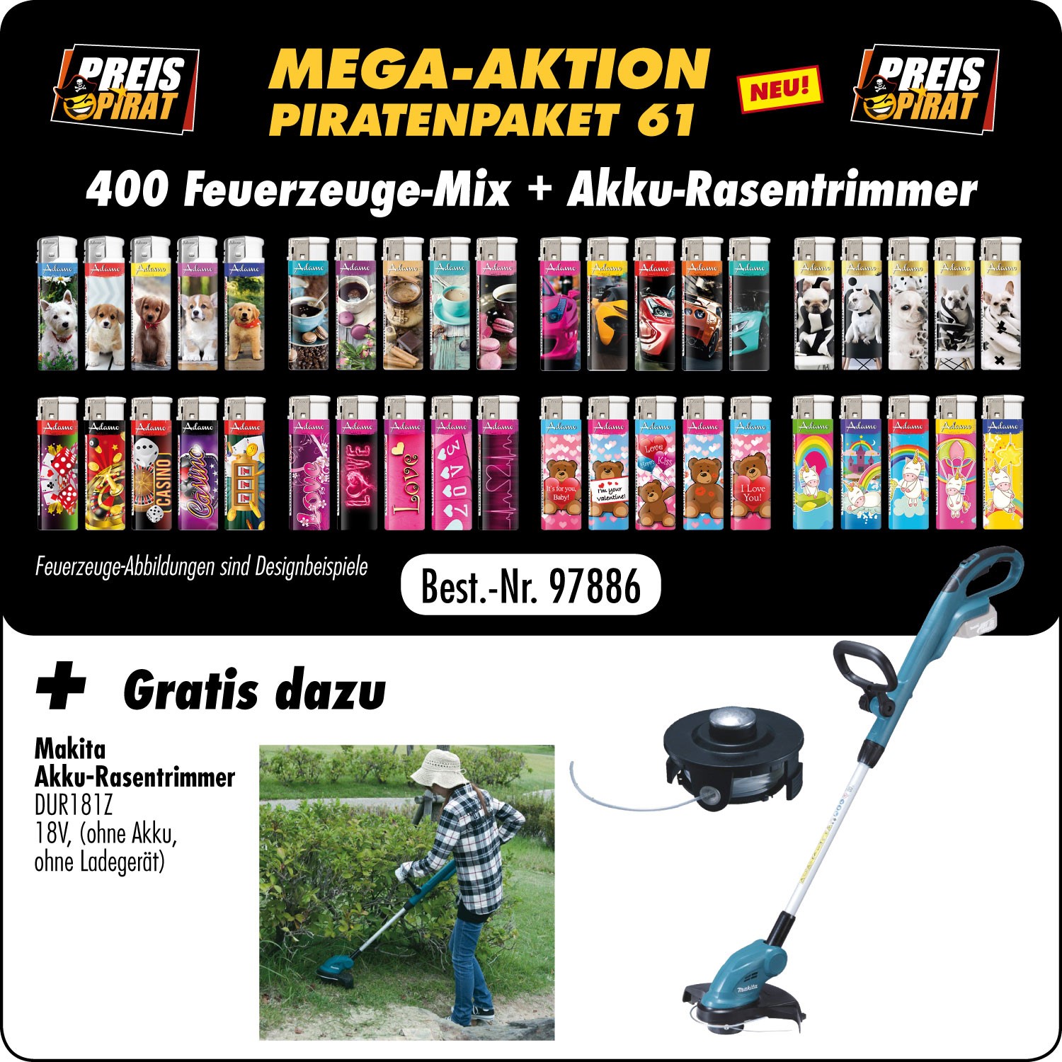 Piraten Aktions Paket XL 61 - mit 400 Motiv Fzg. Mix + Gratis Makita Akku-Rasent
