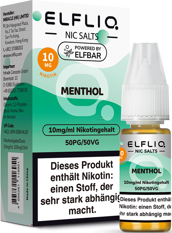Elfbar ELFLIQ E-Liquid 10mg Nikotinsalz MENTHOL (Minze) á 10ml im 10er Dsp.(PG-VG Anteil 50/50 %)(mit Steuerbanderole)
