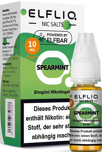 Elfbar ELFLIQ E-Liquid 10mg Nikotinsalz SPEARMINT (Minze) á 10ml im 10er Dsp.(PG-VG Anteil 50/50 %)(mit Steuerbanderole)