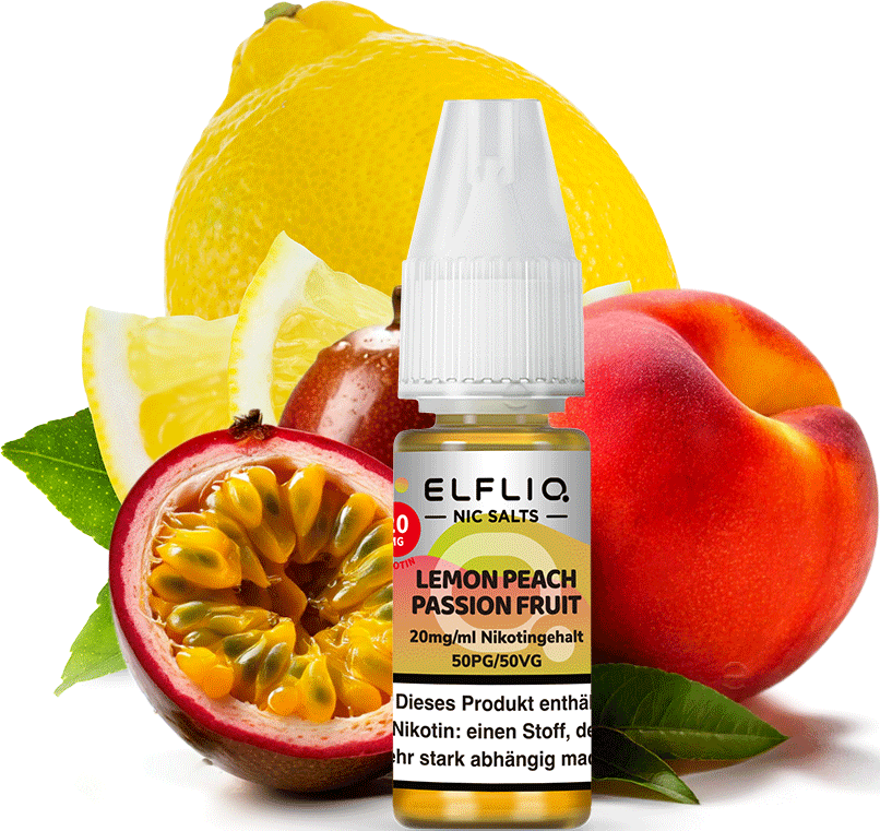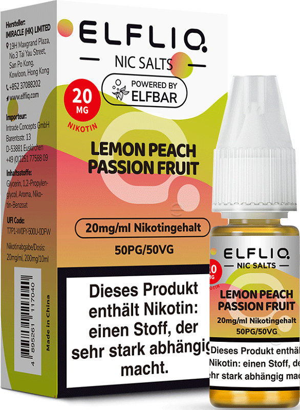 Elfbar ELFLIQ E-Liquid 20mg Nikotinsalz LEMON PEACH PASSION FRUIT (Zitrone, Pfirsich, Passionsfrucht) á 10ml im 10er Dsp.(PG-VG Anteil 50/50 %)(mit Steuerbanderole)