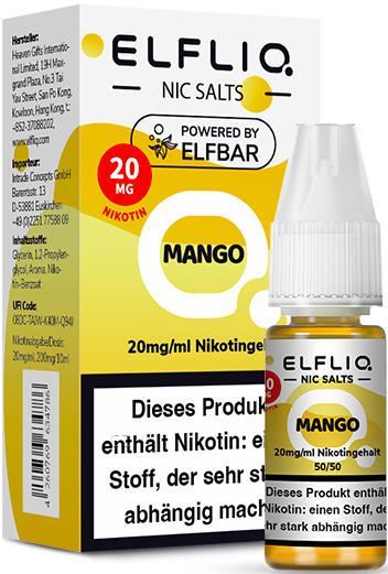 Elfbar ELFLIQ E-Liquid 20mg Nikotinsalz MANGO (Mango) á 10ml im 10er Dsp.(PG-VG Anteil 50/50 %)(mit Steuerbanderole)