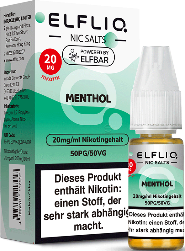 Elfbar ELFLIQ E-Liquid 20mg Nikotinsalz MENTHOL (Minze) á 10ml im 10er Dsp.(PG-VG Anteil 50/50 %)(mit Steuerbanderole)