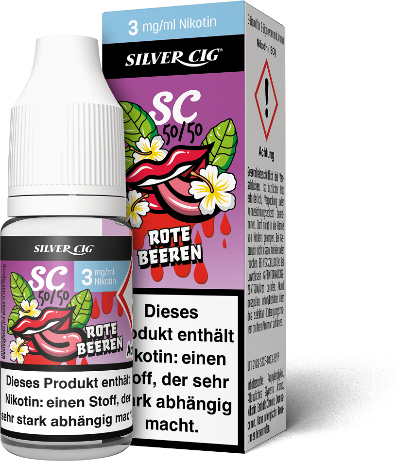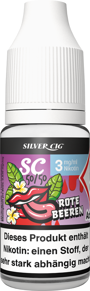 E-Liquid Silver-Cig ROTE BEEREN 3mg/ml Nikotin 10ml im 5er Dsp.(DPT2 Konform EU Herstellung PG-VG Anteil 50/50%)(mit Steuerbanderole)