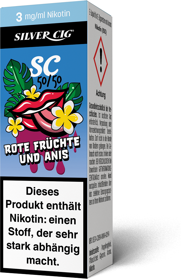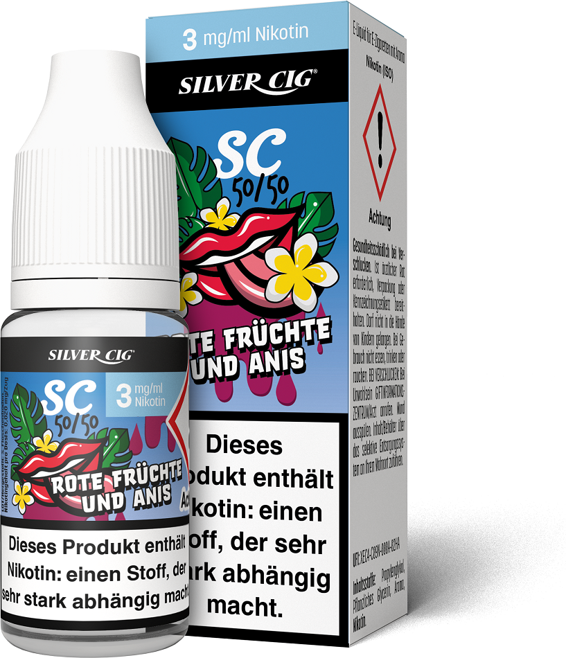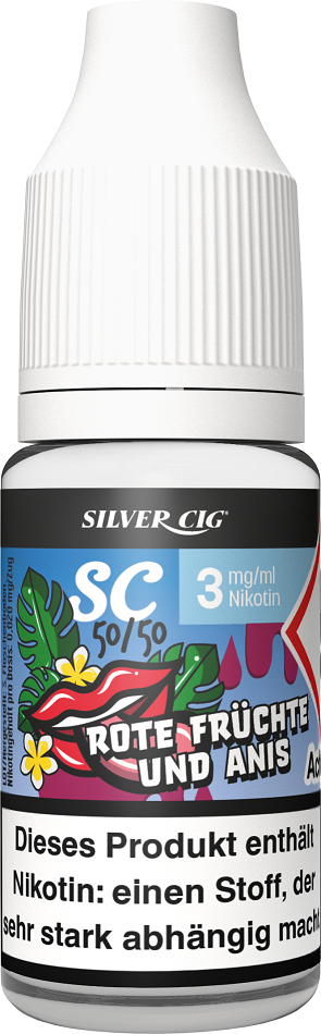E-Liquid Silver-Cig ROTE FRÜCHTE & ANIS 3mg/ml Nikotin 10ml im 5er Dsp.(DPT2 Konform EU Herstellung PG-VG Anteil 50/50%)(mit Steuerbanderole)