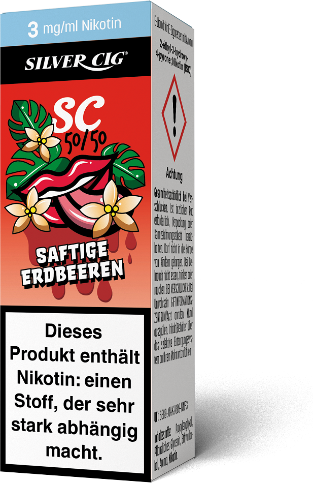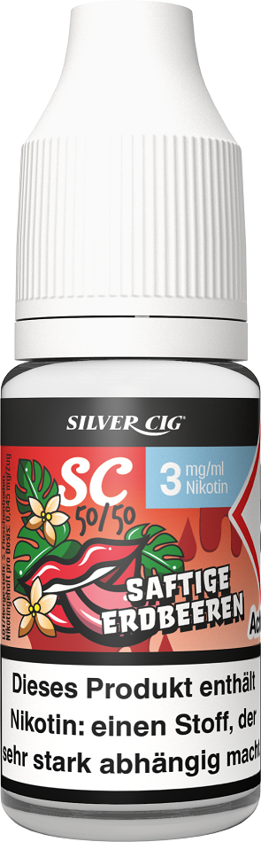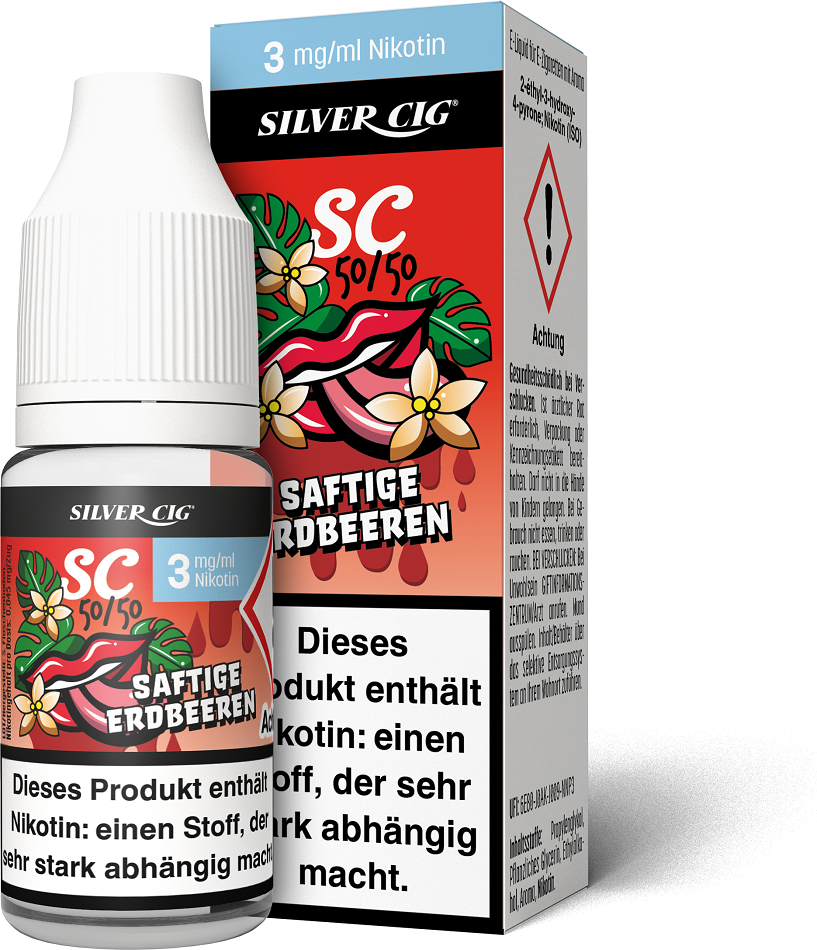E-Liquid Silver-Cig SAFTIGE ERDBEERE 3mg/ml Nikotin 10ml im 5er Dsp.(DPT2 Konform EU Herstellung PG-VG Anteil 50/50%)(mit Steuerbanderole)