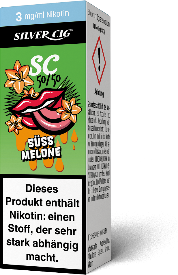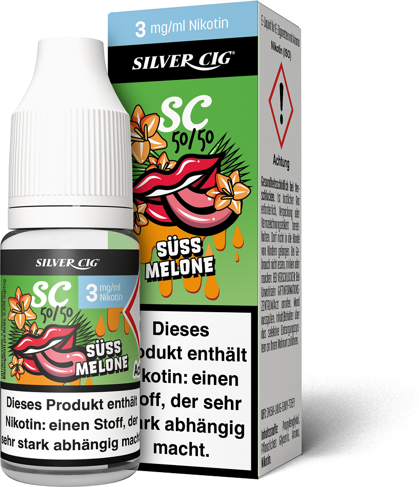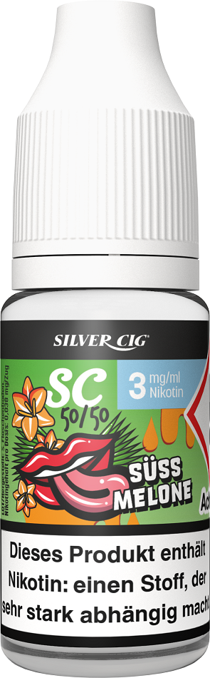 E-Liquid Silver-Cig SÜSS MELONE 3mg/ml Nikotin 10ml im 5er Dsp.(DPT2 Konform EU Herstellung PG-VG Anteil 50/50%)(mit Steuerbanderole)