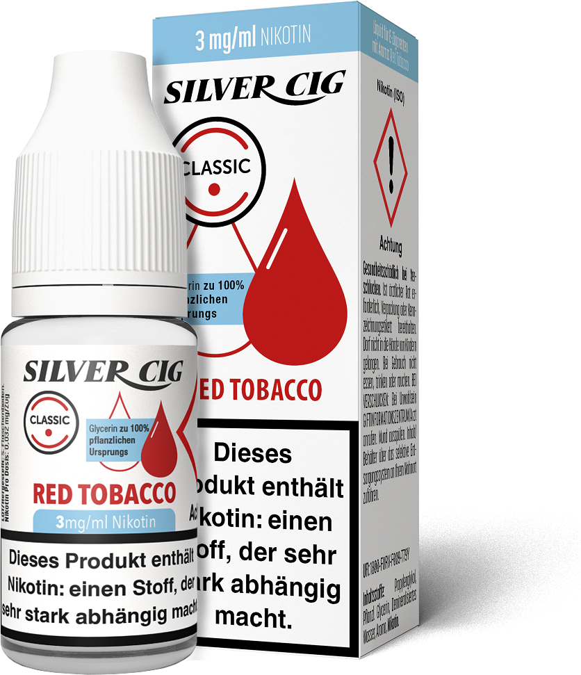 E-Liquid Silver-Cig RED TOBACCO 3mg/ml Nikotin 10ml im 5er Dsp.(DPT2 Konform EU Herstellung PG-VG Anteil 70/30%)(mit Steuerbanderole)