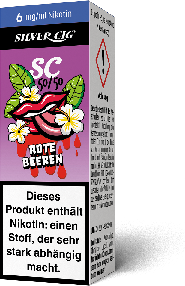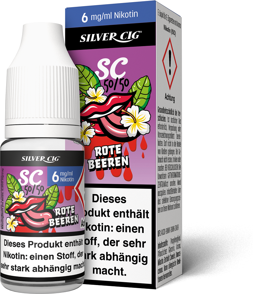 E-Liquid Silver-Cig ROTE BEEREN 6mg/ml Nikotin 10ml im 5er Dsp.(DPT2 Konform EU Herstellung PG-VG Anteil 50/50%)(mit Steuerbanderole)