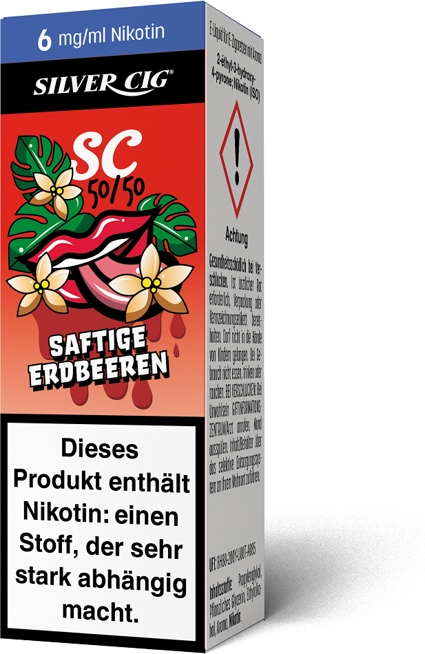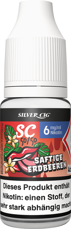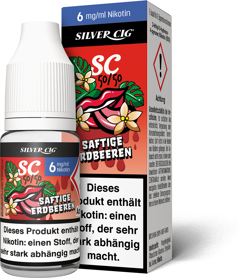 E-Liquid Silver-Cig SAFTIGE ERDBEERE 6mg/ml Nikotin 10ml im 5er Dsp.(DPT2 Konform EU Herstellung PG-VG Anteil 50/50%)(mit Steuerbanderole)