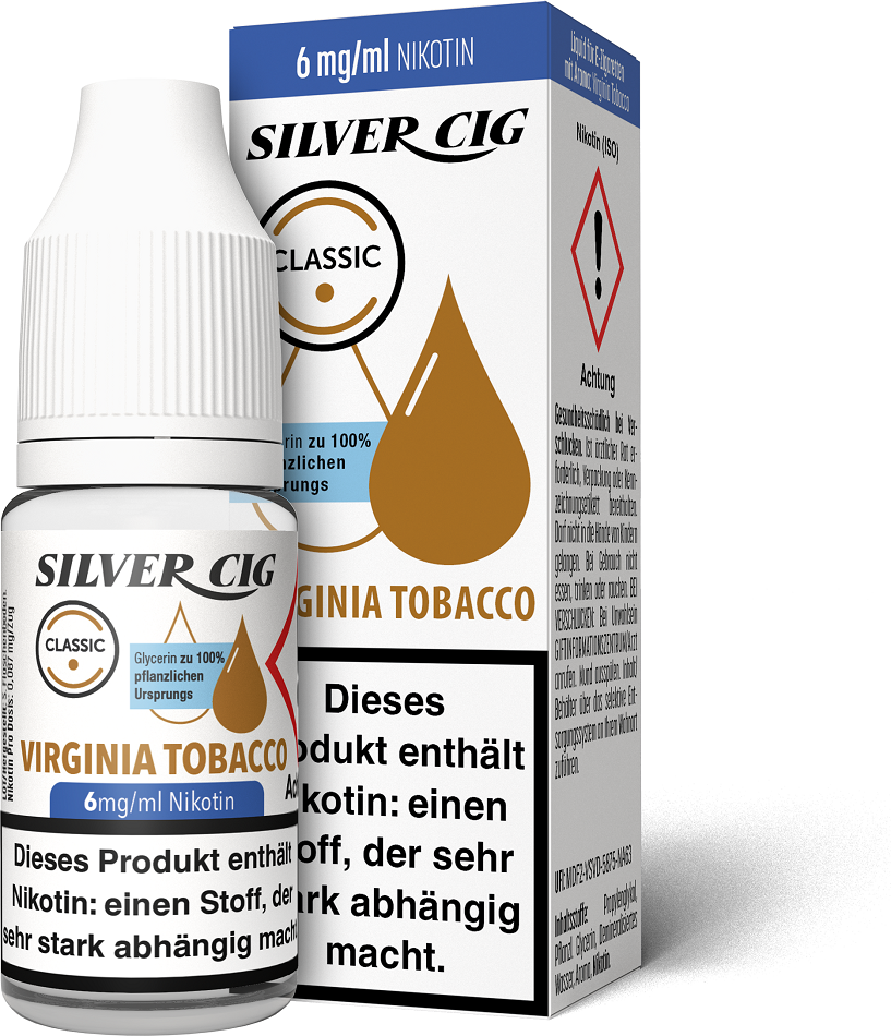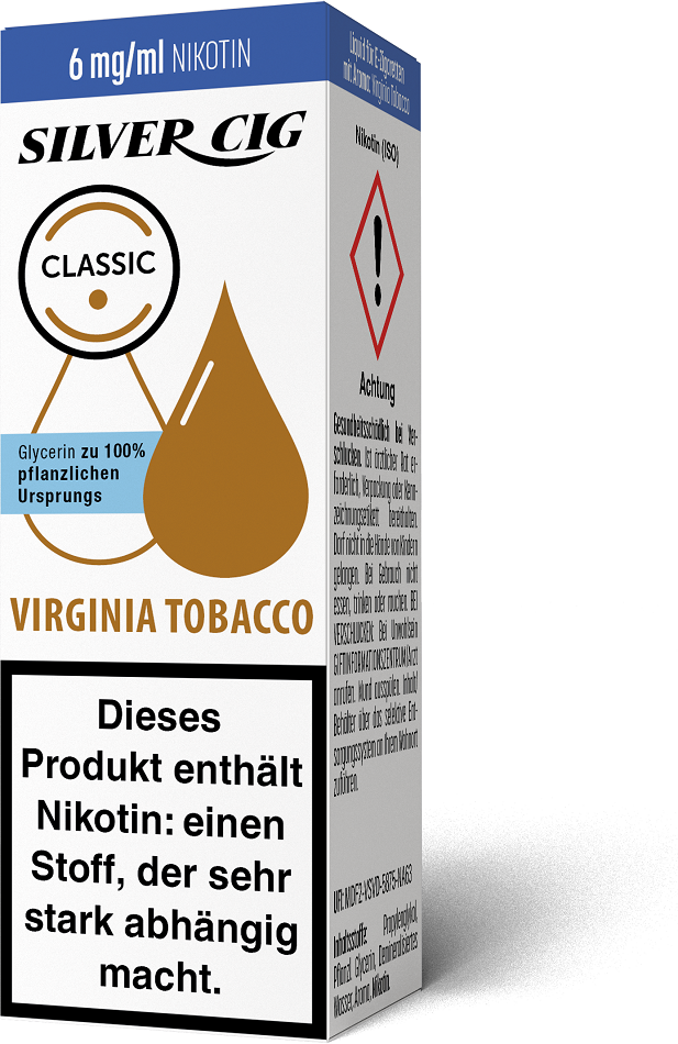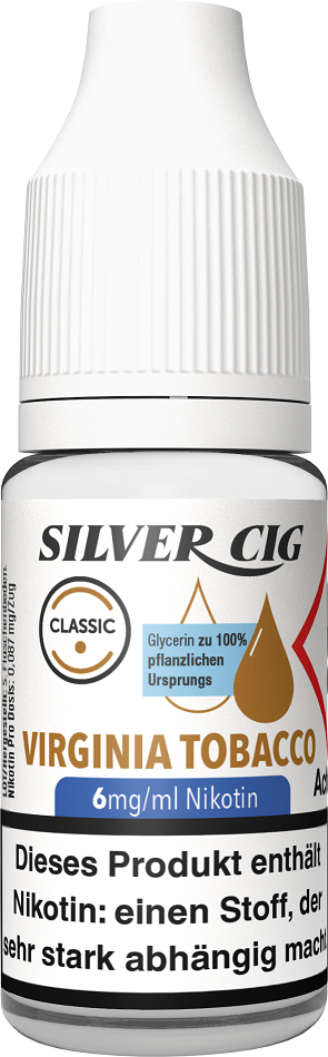 E-Liquid Silver-Cig VIRGINIA TOBACCO 6mg/ml Nikotin 10ml im 5er Dsp.(DPT2 Konform EU Herstellung PG-VG Anteil 70/30%)(mit Steuerbanderole)