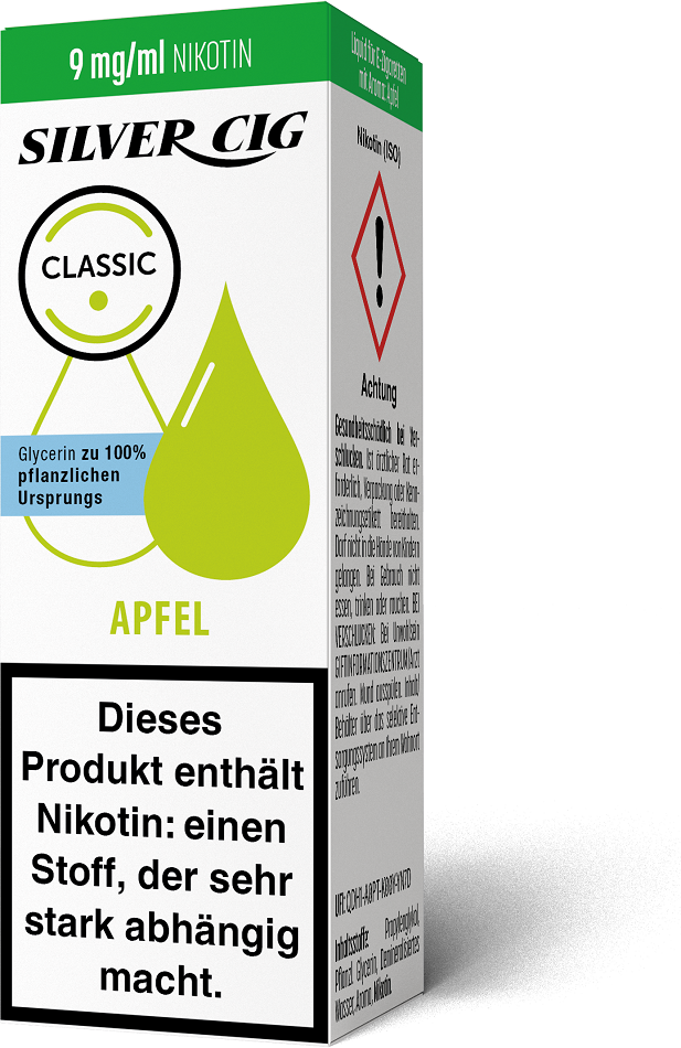 E-Liquid Silver-Cig APFEL 9mg/ml Nikotin 10ml im 5er Dsp.(DPT2 Konform EU Herstellung PG-VG Anteil 70/30%)(mit Steuerbanderole)