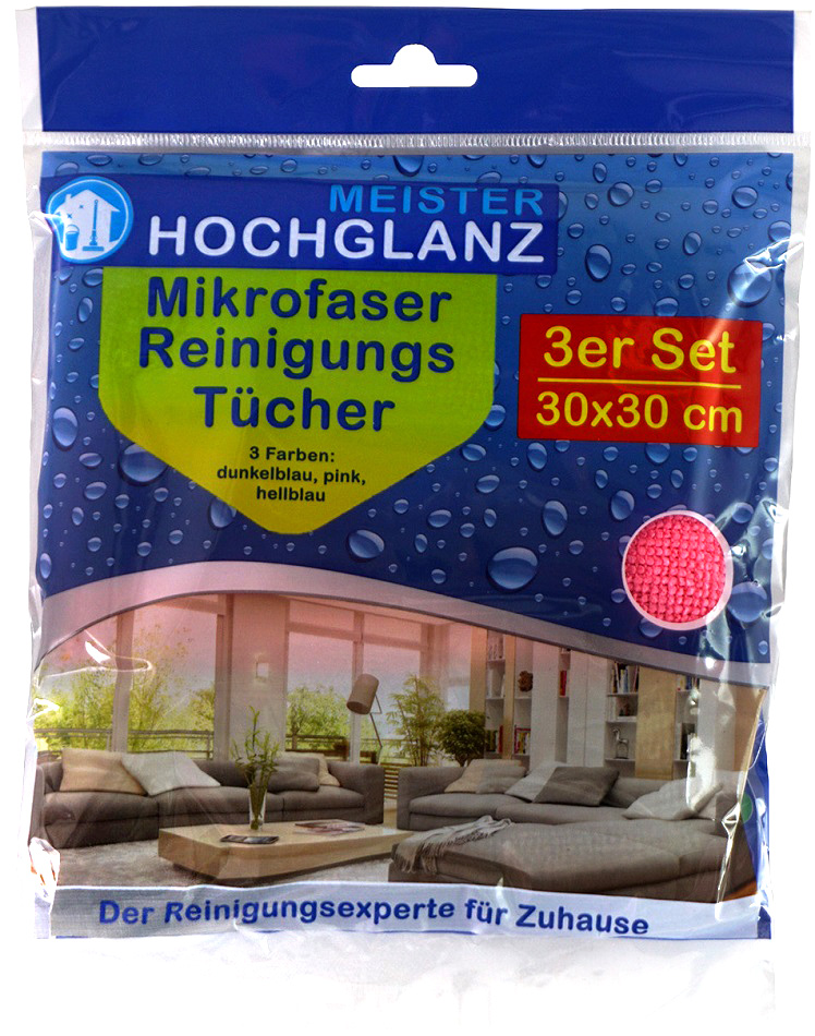 Mikrofasertücher 3er Set farbig sort. in Polybag mit Sichtfenster ca. 30x30cm