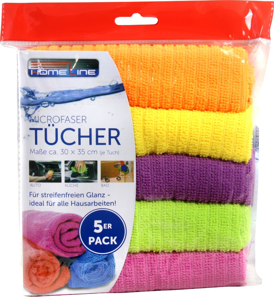 Mikrofasertücher 5er Pack farbig sort. in Polybag mit Sichtfenster ca. 30x35cm i