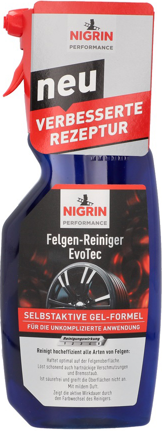 Nigrin Performance Felgen-Reiniger EvoTec säurefrei mit selbstaktiver Gel-Formel, reinigt hocheffizient alle Arten von Felgen, in 750ml Sprühflache