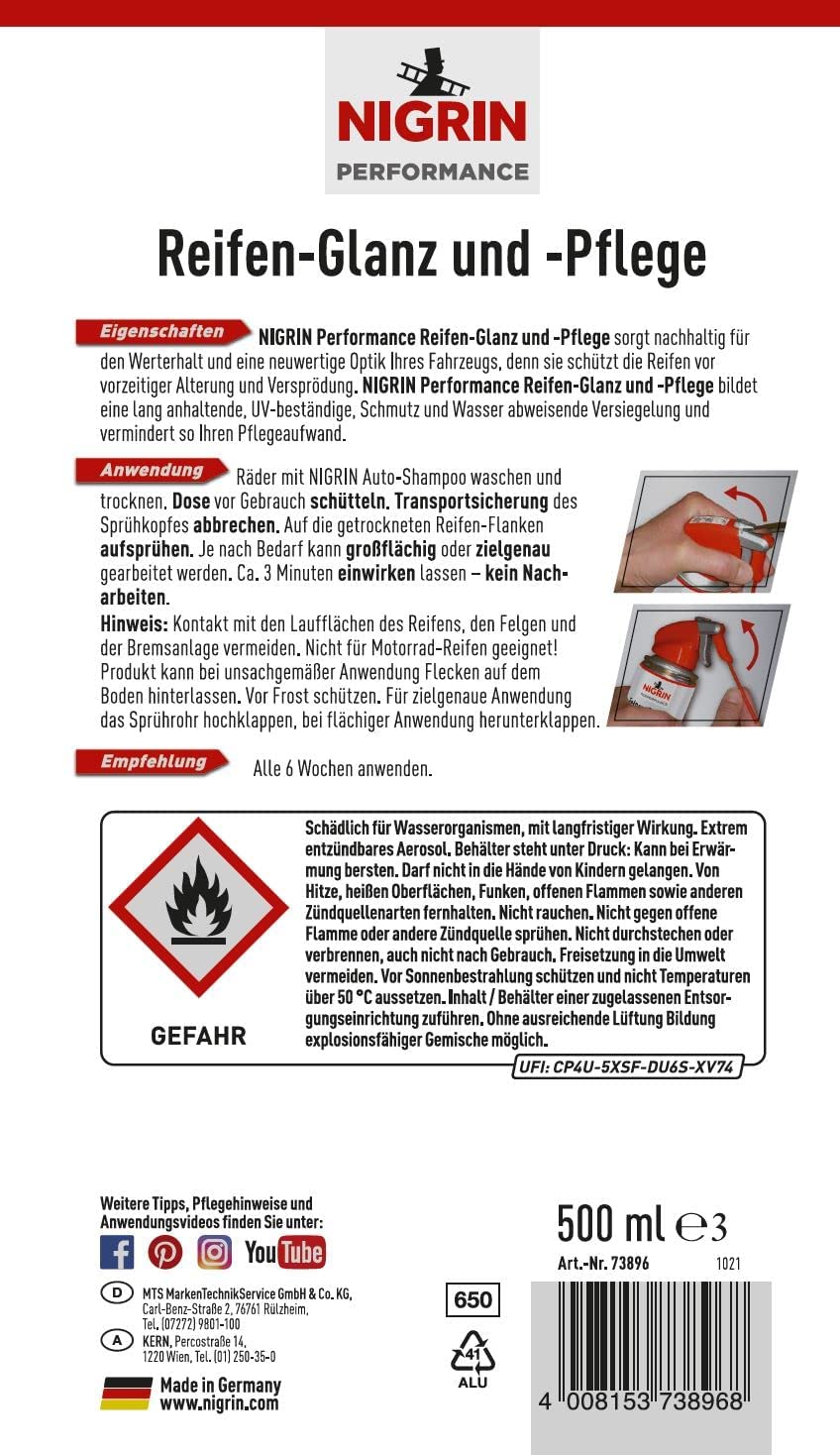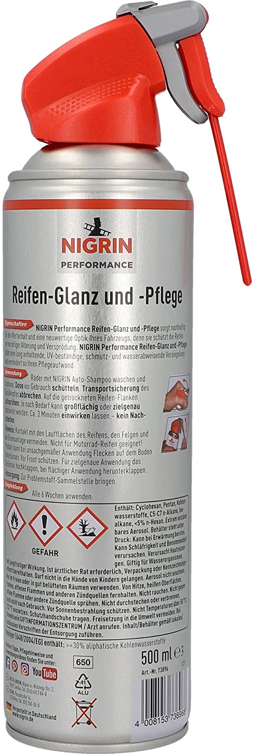 Nigrin Performance Reifen-Glanz & Pflege 500ml Spraydose mit integriertem Präzisions-Sprühkopf