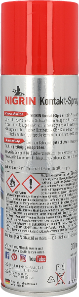 Nigrin Kontakt-Spray in 300ml Sprühdose, Feuchtigkeitsverdrängender Oxid & Sulfid lösender Spezial-Reiniger, reinigt & schützt elektronische Bauteile / Kontakte & Verbindungen, eignet sich für alle Schwachstromanlagen bis 50V