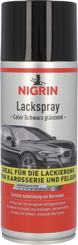 Nigrin Lack-Spray Schwarz glänzend 400ml für Karosserie und Felgen