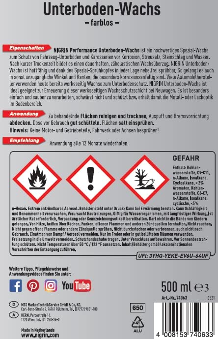 Nigrin Performance Unterboden-Wachs farblos in 500ml Sprühdose