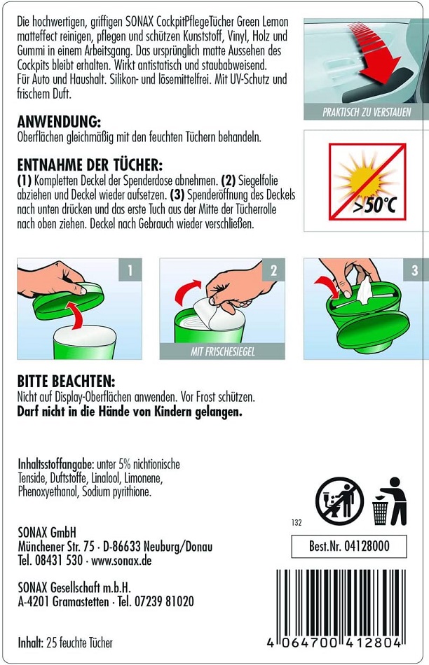 Sonax CockpitPflegeTücher Green Lemon Matteffeckt 20x18cm 25st. in Box
