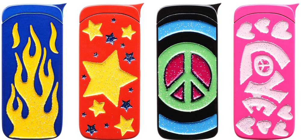 Metall Fzg. mit verschiedenen Motiven 4/s (Peace, Stars, Fire, Love) in 13er T-D