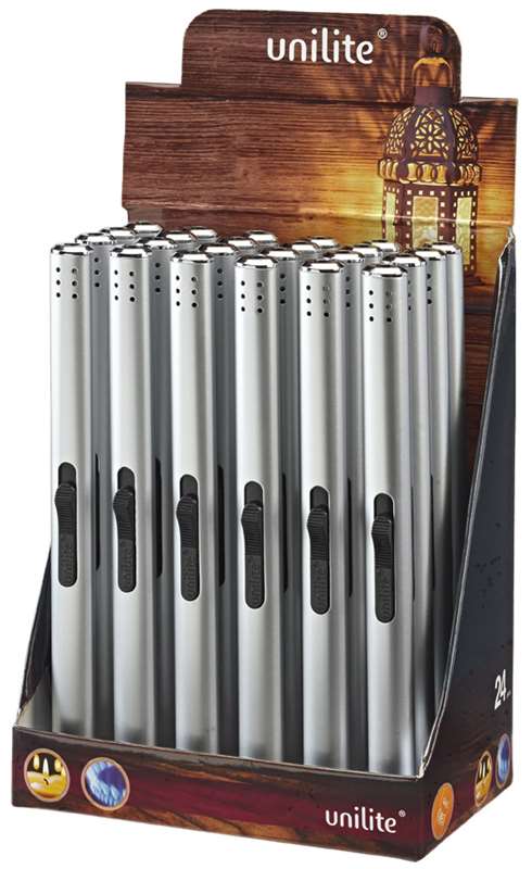 Alu Stabfzg./Kerzenanzünder BBQ Silber Metallic Elegant nachfüllbar ca. 17,5cm im 24er Dsp.