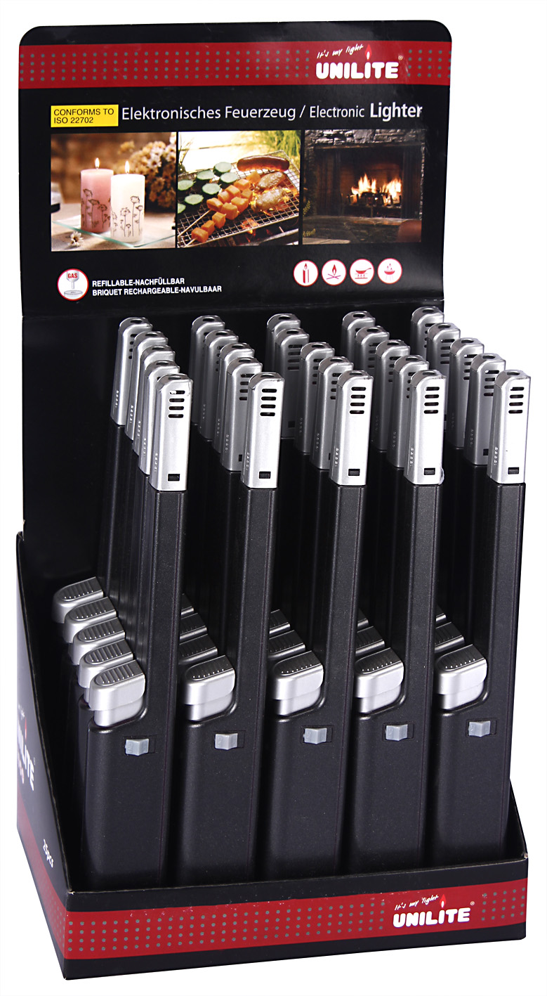 PRAGUE 46 Stabfeuerzeug (nachfüllbar) - MT Schwarz/MT Silber im Display