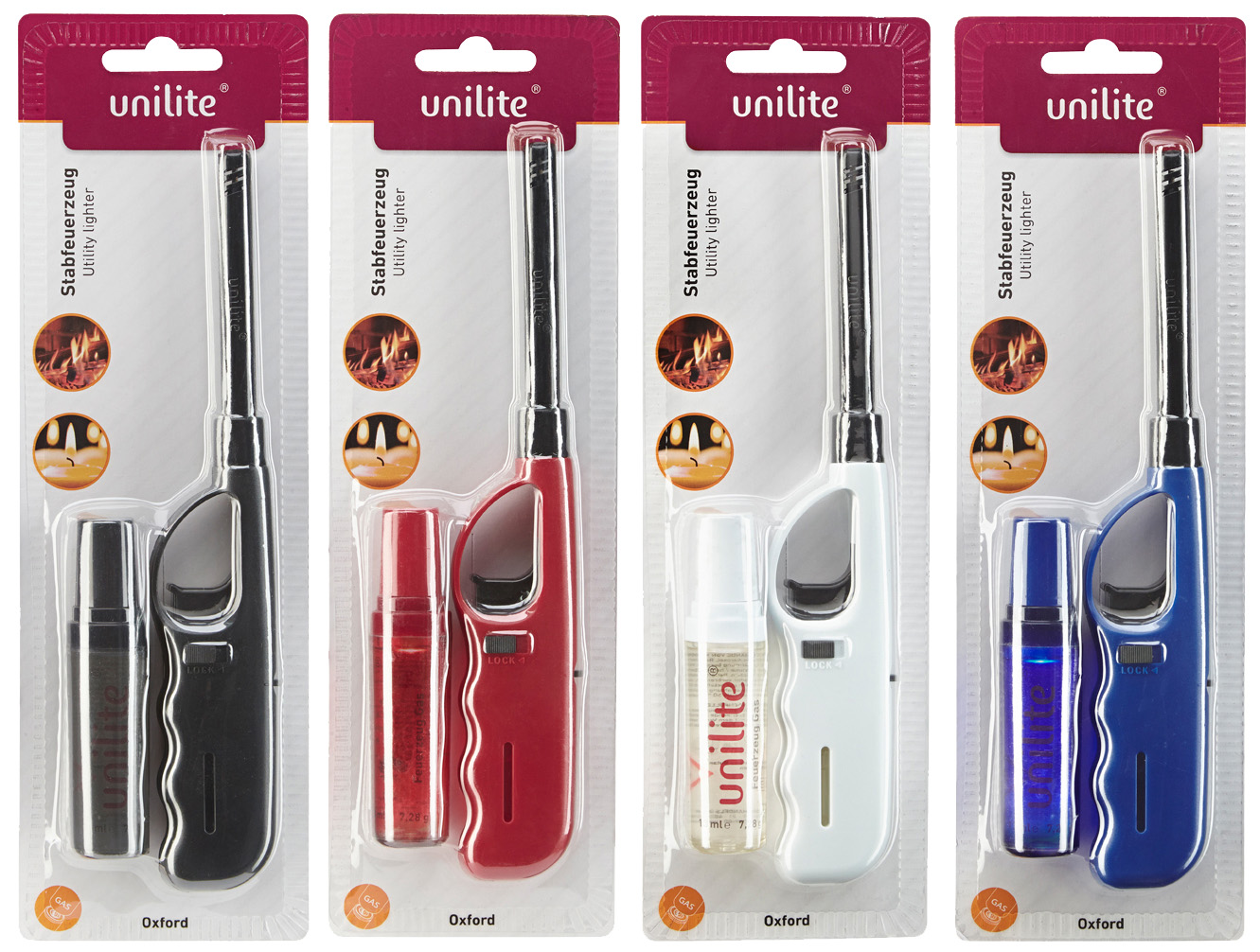 Stabfzg./Kerzenanzünder+13ml Gas nachfüllbar 4-farb. normalflamme sort. ca. 21,5cm auf BK