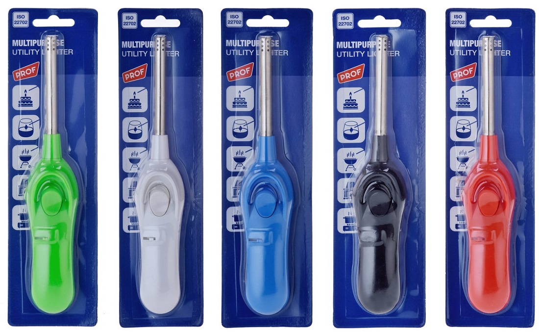 Stabfzg./Kerzenanzünder nachfüllbar normalflamme 5/s ca. 23,5cm (Grün, Weiß, Blau, Schwarz, Rot) auf BK