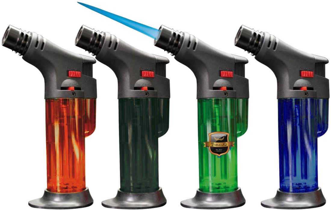 Jet Burner Fzg. Transparent mit Standfuß 4/s (Rot, Schwarz, Grün, Blau) im 12er