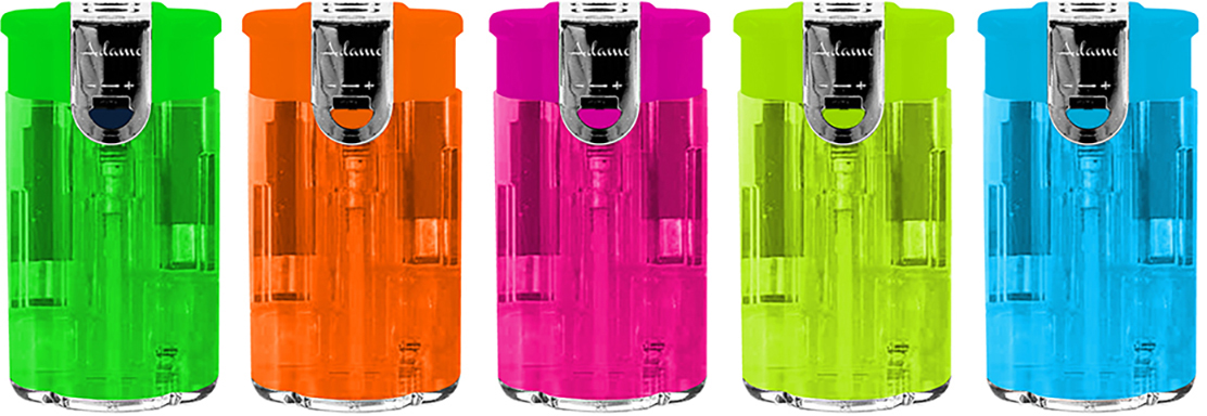 Elektronik Fzg. mit Doppelflamme 2in1 Normal-&Jetflamme 5/s Transp. in 25er T-Dsp.