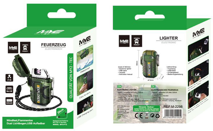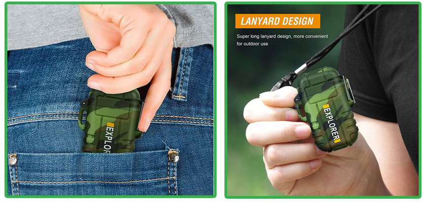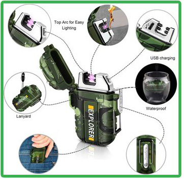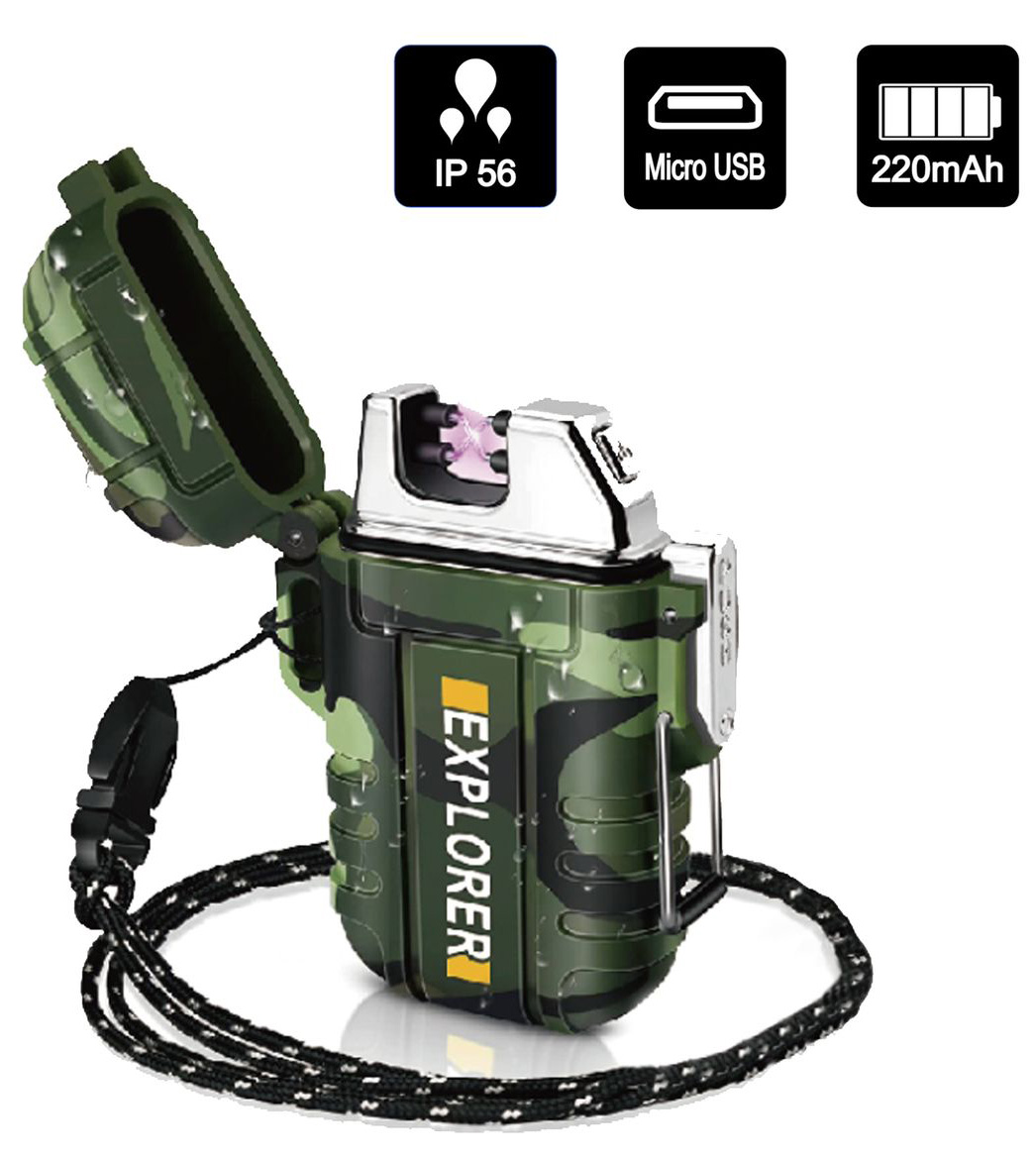 Outdoor Dual Lichtbogen Fzg. mit Klappe&Umhängeband Aufladbar 220mAh Micro USB inkls. Ladekabel IP56 Standart in Farb Box