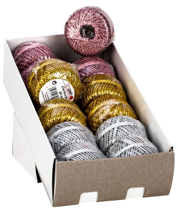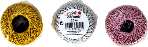 Glanz-/Zierkordeln ca. 20m/Knäuel in silber, rosé und gold im 12er T-Dsp.