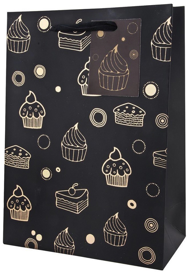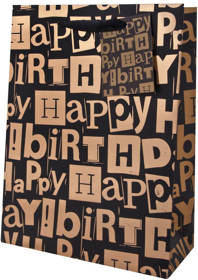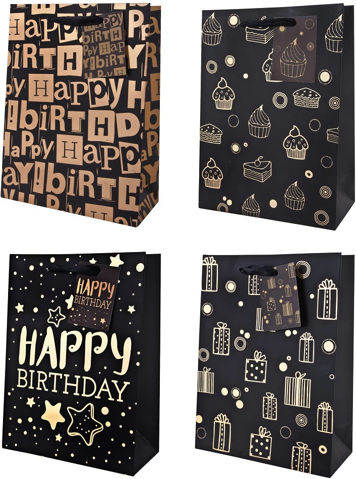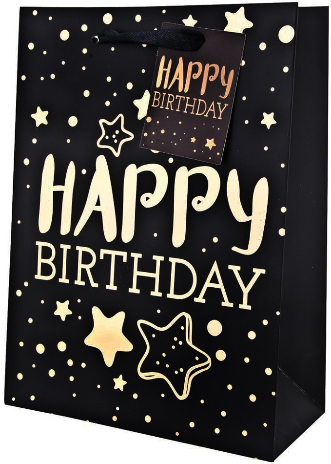 Geschenktüte Happy Birthday Medium Black 4/s ca. 23x17,5x10cm