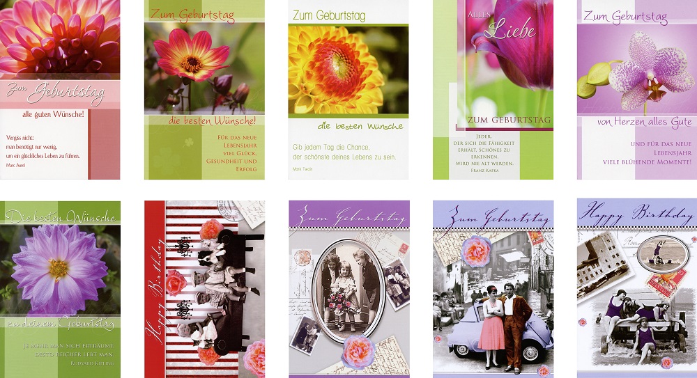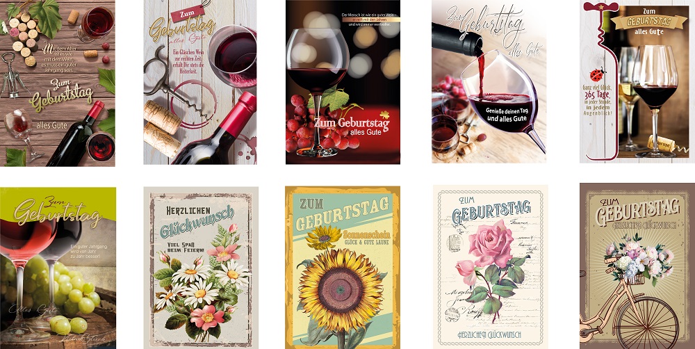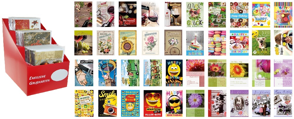 Geburtstagskarten MIX im 150er T-Dsp. in Rot mit 3 Fächern ca. 18x30,5x25cm