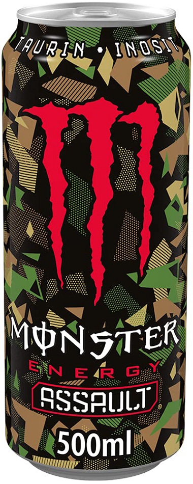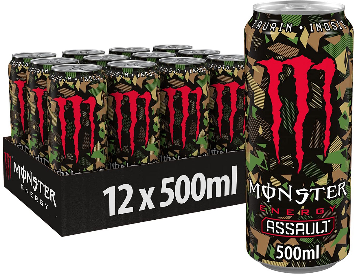 Monster Assault 500ml mit Taurin Koffeinhaltiges Erfrischungsgetränk (DPG Einwegpfand/Pfanddose) im 12er Tray