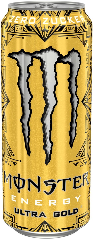 Monster Ultra Gold 500ml mit Taurin ohne Zucker Koffeinhaltiges Erfrischungsgetränk (DPG Einwegpfand/Pfanddose) im 12er Tray