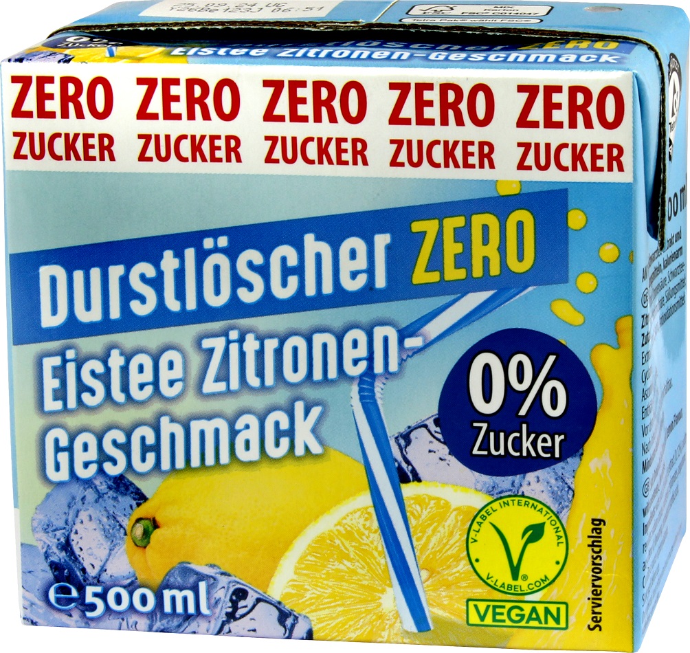 Durstlöscher Eistee Zitrone Zero Zucker 0,5l 12Stk. Tetra Pack(Pfandfrei)