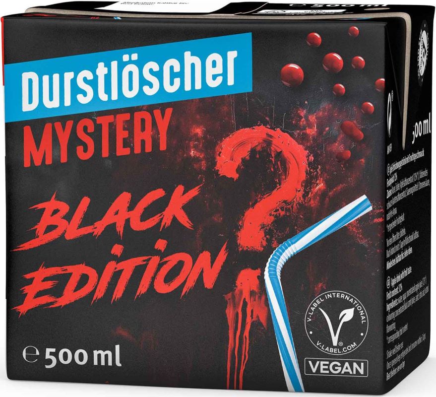 Durstlöscher Mystery Black Edition "Erkennst du den Geschmack?" 0,5l 12 Stk. Tetra Pack(Pfandfrei)