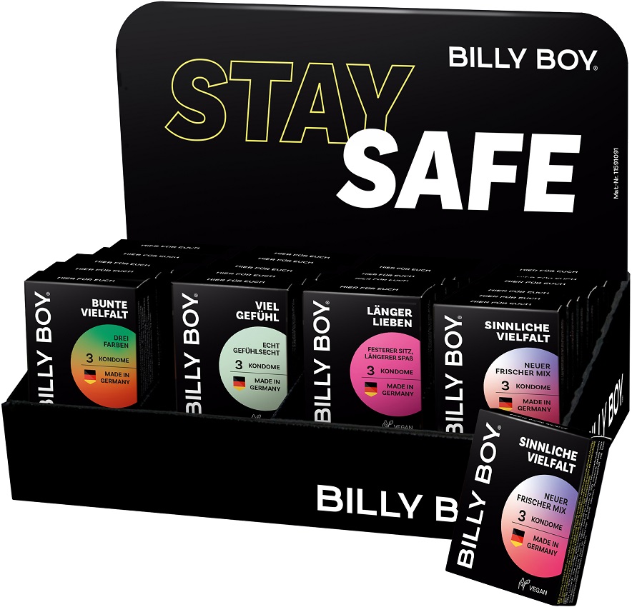 Billy Boy Kondome 9x Bunte Vielfalt+5x Sinnliche Vielfalt+5x Länger Lieben+9x Viel Gefühl im Tray mit 28 x 3er Packs "DNP Preis"