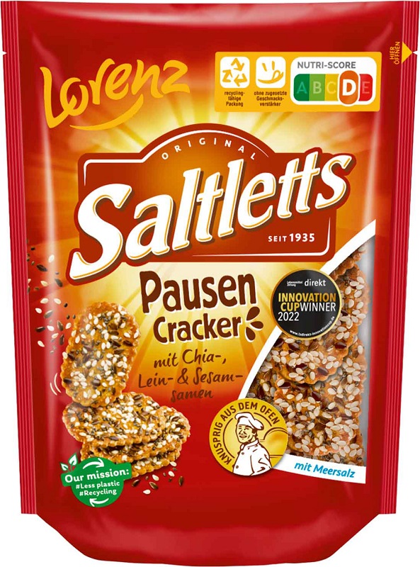 Lorenz Saltletts Pausen Cracker im 100g Beutel - Vollkorn Laugengebäck mit Sesam