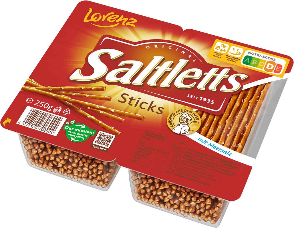 Lorenz Saltletts Sticks Classic 250g - 2 Frischepacks mit Laugengebäck Stangen mit Meeressalz