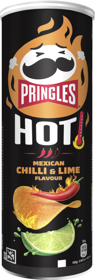 Pringles HOT Mexican Chili and Lime Stapelchips auf Kartoffelbasis mit Chili-/Limetten Geschmack & 40% weniger Salz 160g