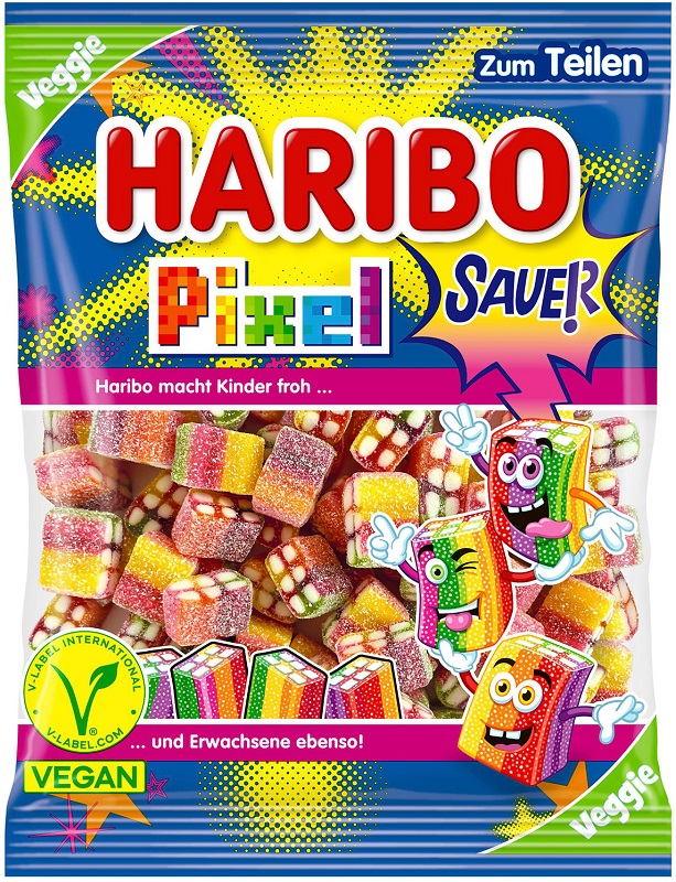 Haribo Rainbow Pixel gezuckerte saure Fruchtgummi-Konfekt-Stücke Vegan im 160g Beutel