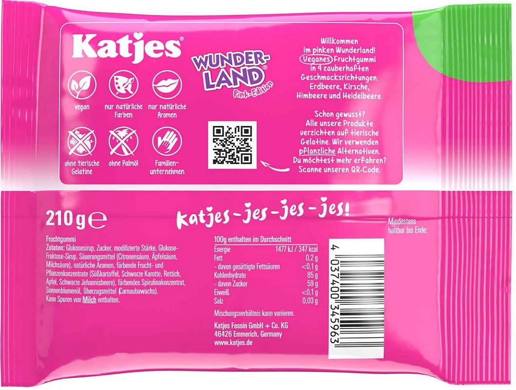 Katjes Wunderland Pink-Edition, Fruchtgummis mit fruchtigen Geschmacksnoten. Für