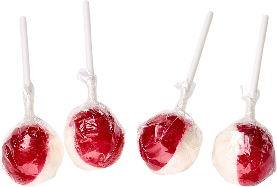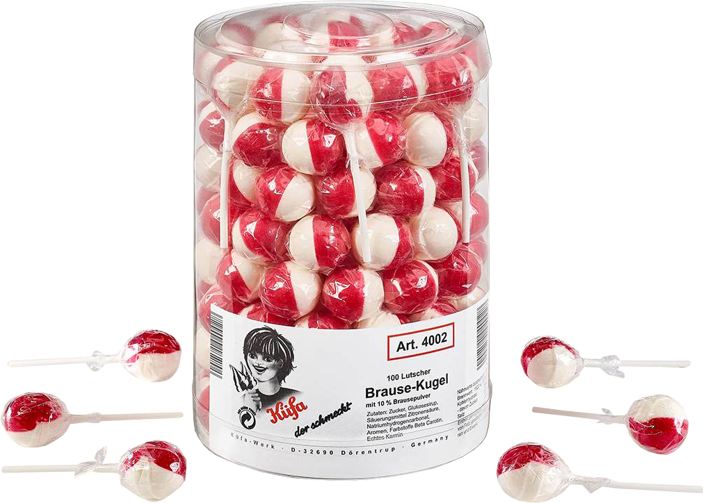 Küfa Brause-Kugel Lollis mit Kirsch-Geschmack und einem Kern aus Brausepulver in